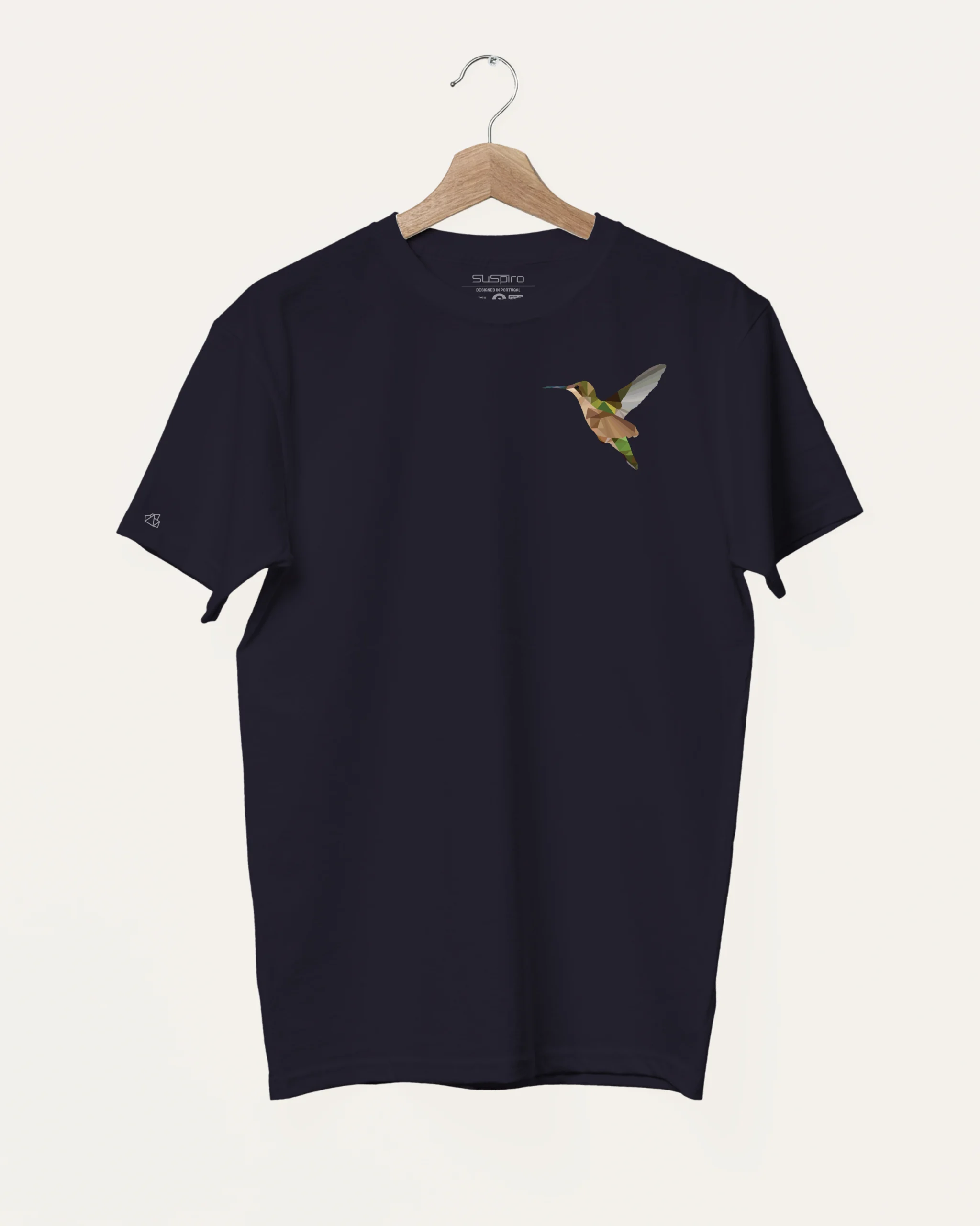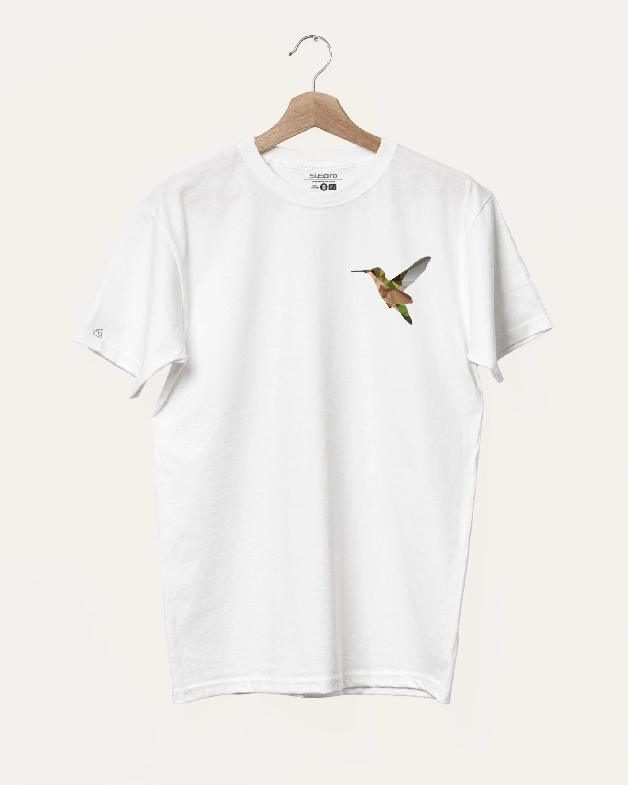 Produzida com o nosso 100% Algodão Premium, a malha de 190 g/m² é a garantia de uma t-shirt encorpada, macia ao toque e respirável, que proporciona um caimento impecável. O tecido de alta qualidade assegura que a peça é duradoura e mantém a sua forma premium ao longo do tempo. A estampagem, rica em detalhe e cor, dá vida à minúcia das penas e ao brilho cintilante do beija-flor.