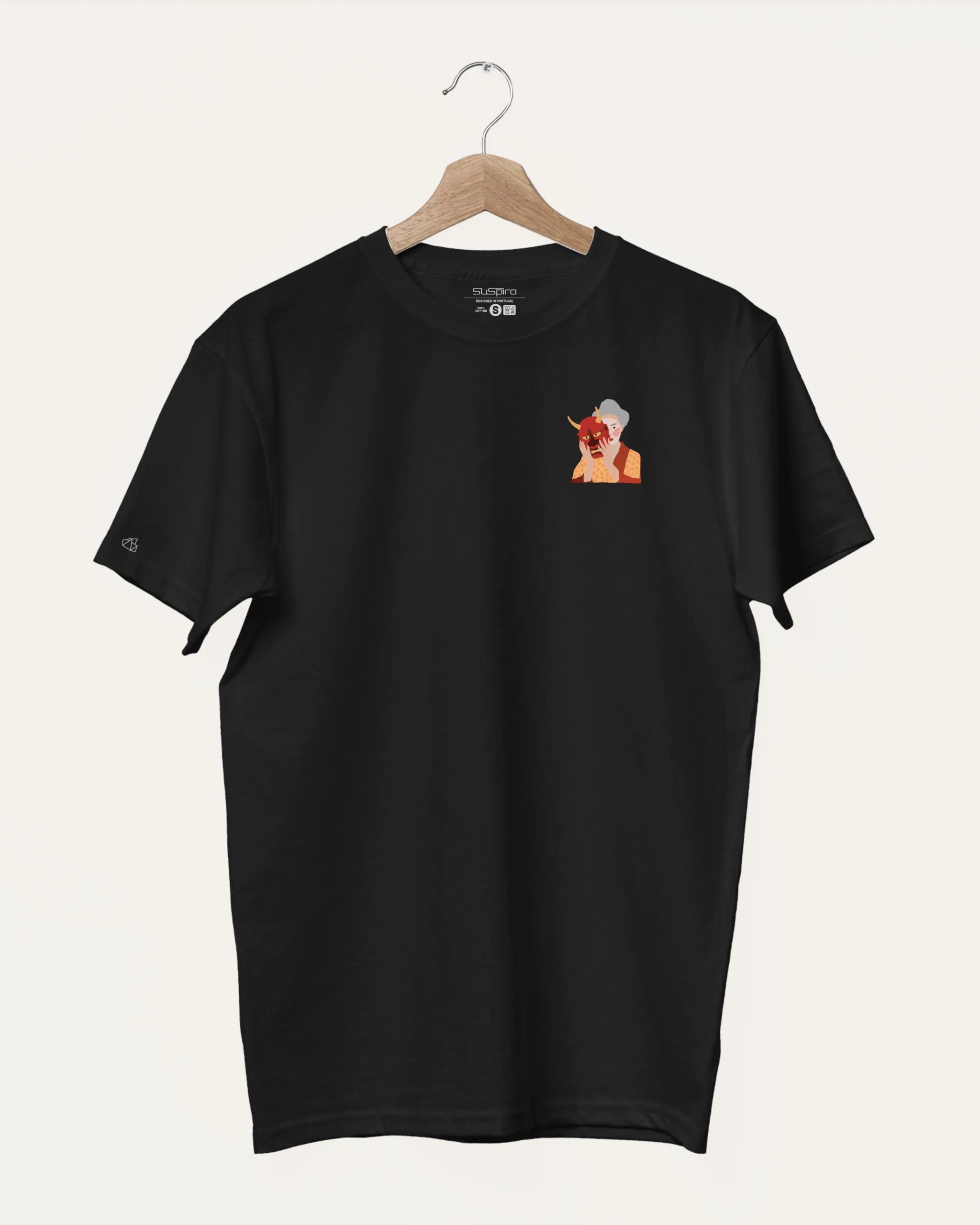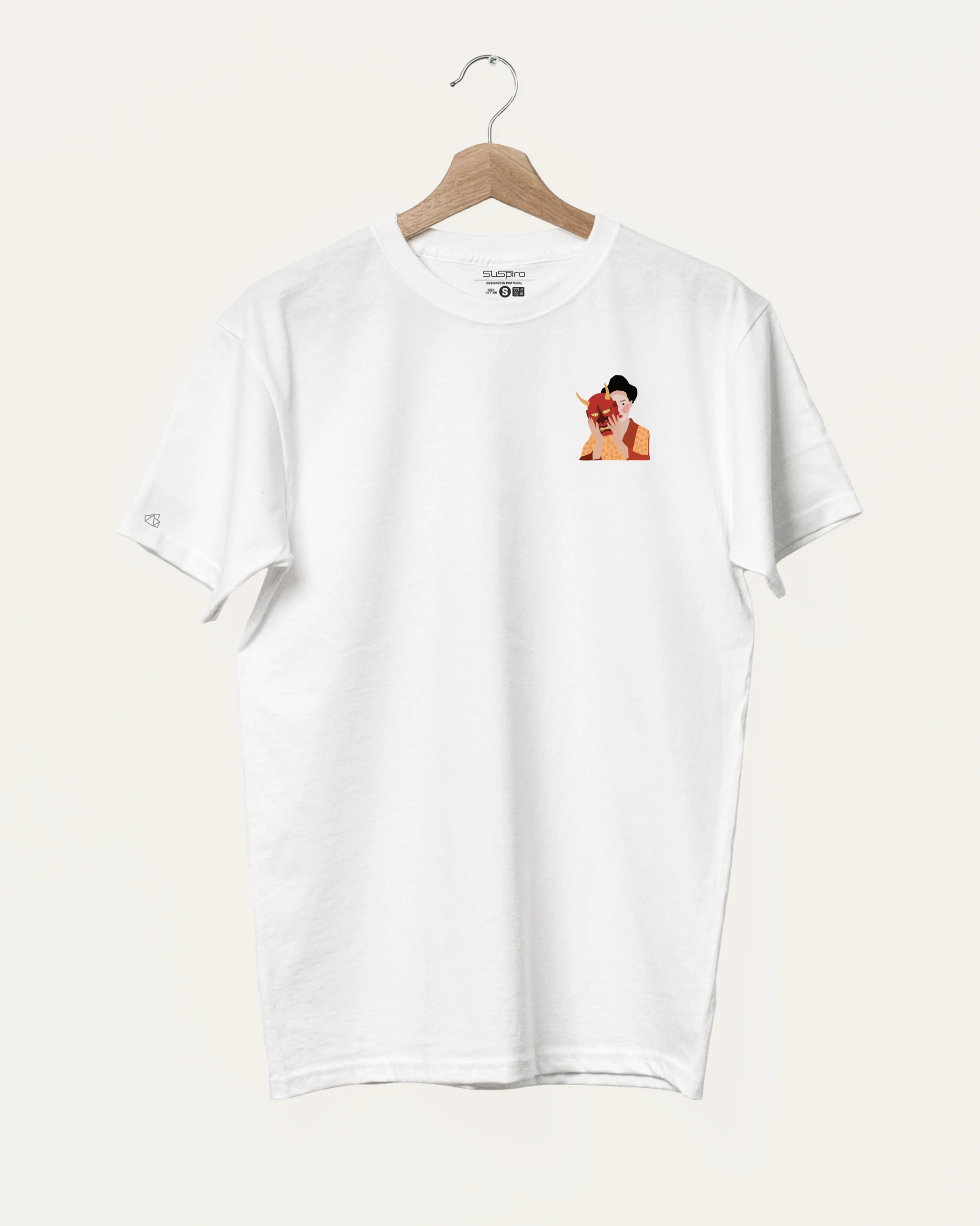 Esta t-shirt é ideal para apreciadores de arte, cultura oriental, teatro ou para quem simplesmente se identifica com a metáfora de mostrar o seu verdadeiro “eu”. Uma peça única que certamente provocará conversas e olhares de admiração.